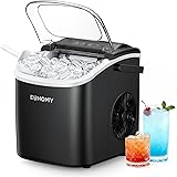 EUHOMY Countertop Ice Maker Machine with Handle, 26lbs in 24Hrs, 9 Ice Cubes Ready in 6 Mins, Auto-Cleaning Portable Ice Maker with Basket and Scoop, for Home/Kitchen/Camping/RV. (Black)